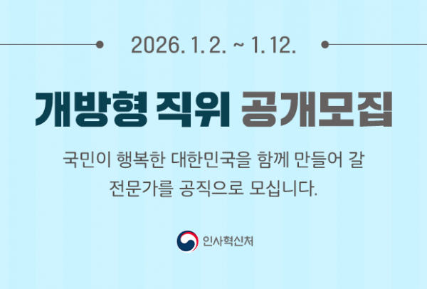 2026년 1월 개방형 직위 선발안내 페이지 정보 작성자 종합행정실 댓글 0건 조회 30회 작성일 26-01-06 09:03 본문 목록 이전글'2026년 상반기 경기도 대학생 학자금 대출이자 지원' 사업 홍보 안내 26.01.06 다음글제61회 발명의 날 유공 포상 및 올해의 발명왕 선발 신청안내 26.01.06 댓글목록 댓글목록 등록된 댓글이 없습니다.