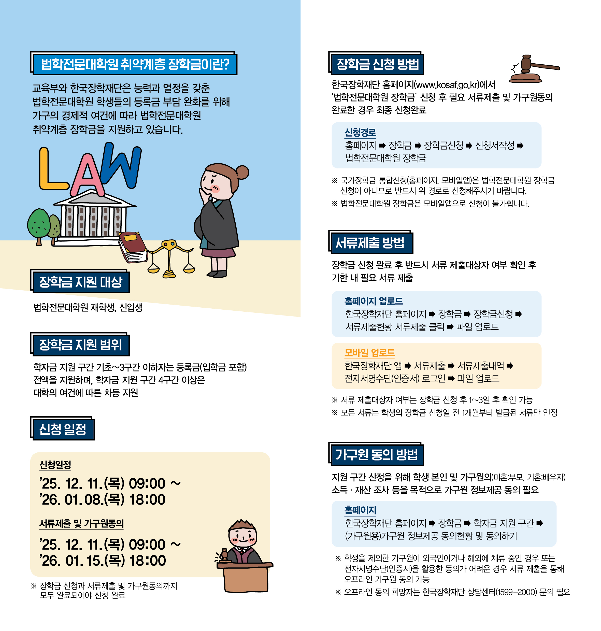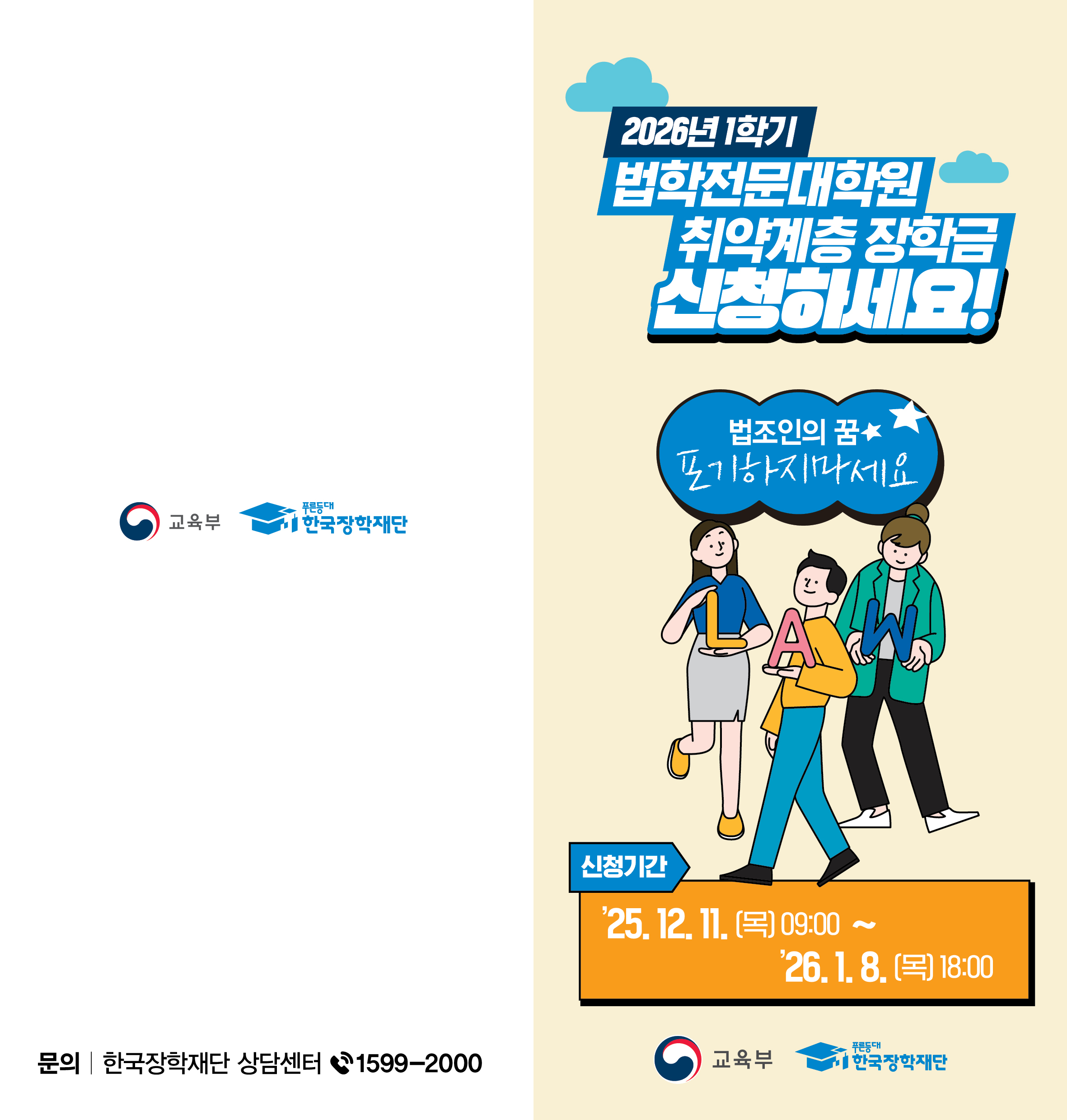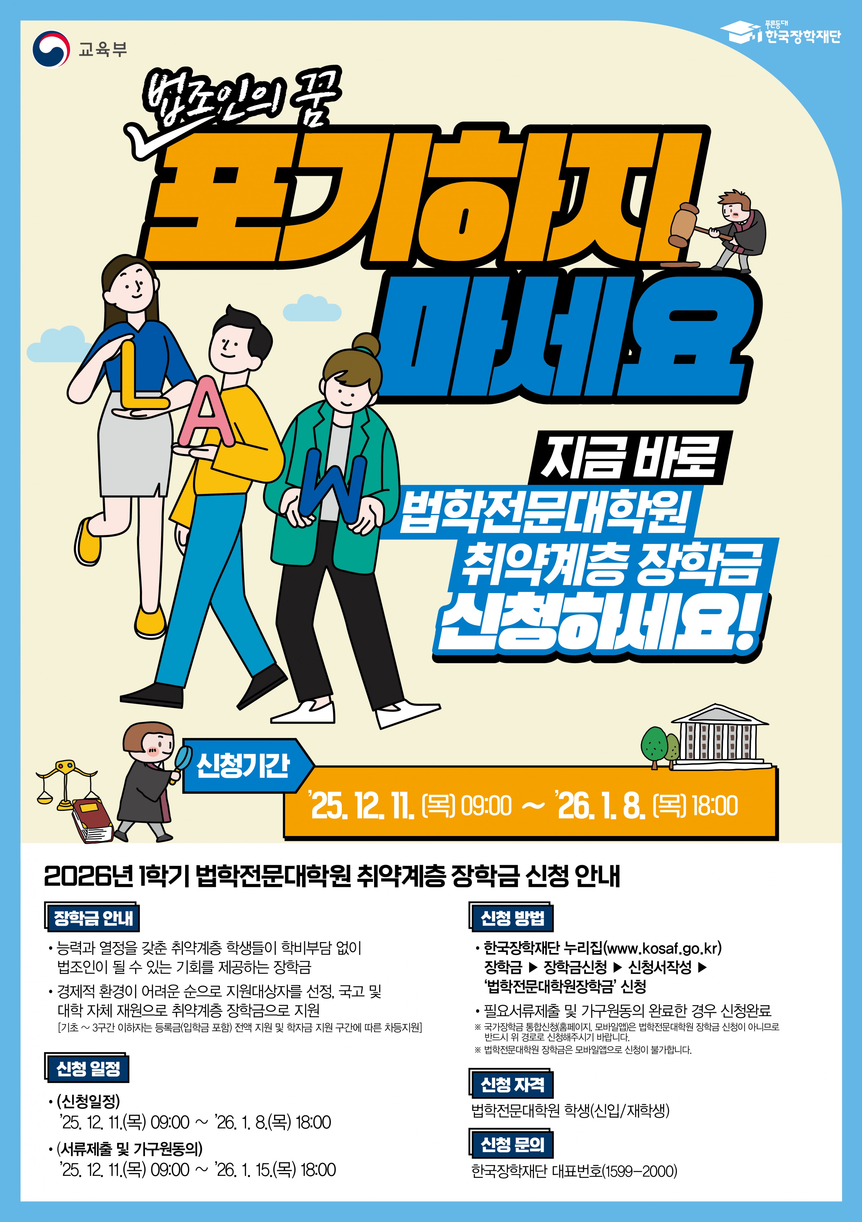 2026년 1학기 법학전문대학원 취약계층 장학금 신청 안내 [26.1.8.(목) 마감]