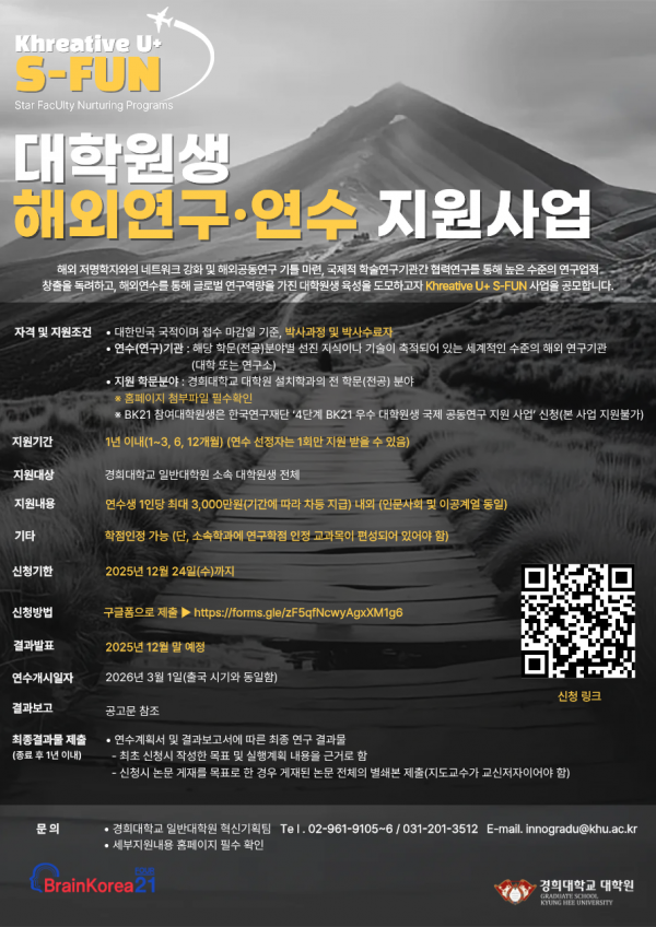 [대학원혁신기획]2026년 S-FUN 대학원생 해외연구 연수 지원 사업